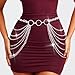 Silver waist chain total length is 102CM/40.2IN, consisting of a 43CM/16.9IN rhinestone chain, one 20CM/7.9 metal chain, and the other 39CM/15.4IN metal chain, suitable for women with waist size 4-12 US.