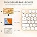 COVEVA Colorful Wireless Bluetooth Keyboard, 2.4G & Dual Bluetooth Multi-Device, Typewriter Retro Round Keycaps 104 Keys Full-Size Keyboard for PC Laptop Tablet Phone (White Milk-Tea)