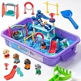 PreTrans Pet Track Set, Pet Sensory Bin for Kids, All-in-One Animal Sensory Sand Kit with Dog Playset & Tools