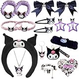WINBBY 117Pcs Kawaii Cute Stuff Gifts Set Include Headband,Pouch, Hair Band, Hair Ties & Clips, Hairpin, Stickers, Necklace,Bracelet, Keychain(Black)