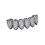 18K Gold Teeth Grillz, Hip Hop Punk Style Plated Iced Out Diamond Top and Bottom, Rapper Fashion Accessories Cosplay(Silver (Style 1))
