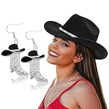 Aswitnove 2 Pcs Cowboy Hat Rhinestone Cowgirl Boots Earrings Set Western Earrings Felt Fedora Jazz Hat Rodeo Outfit for Women Men Black
