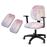 Cugasmaru Floral Chair Cover 4-Piece Set with Arm Rest Cushions for Office Chair Botanical Print Elastic Washable Desk Chair Seat Covers for All Room Types