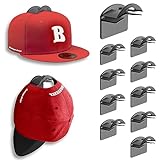 BRATEAYA Hat Hangers for Wall, Stronge Adhesive Hat Holders Display, No Driling Caps Holder Organizer, 10 Pack Hat Hook for Baseball Caps, Wall Mounted Cap Rack, Translucent Black