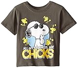 Peanuts Little Boys' Snoopy All My Friends are Chicks Short Sleeve Tee, Charcoal, 2T