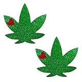 Neva Nude Glorious Green Glitter Weed Leaf Nipztix Pasties Nipple Covers for Festivals, Raves, Parties, Lingerie and More, Medical Grade Adhesive, Waterproof and Sweatproof, Made in USA