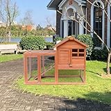 SEOCCTV 48" Chicken Coop, Modern Wooden Rabbit Cage with Detachable Tray and Anti Slip Asphalt Roof Outdoor Large Pet Hutch with Run and Chicken Nesting Box for All Poultry(Light Brown)