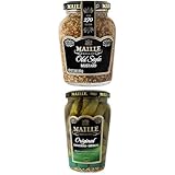 Maille Gourmet Bundle: Old Style Mustard 7.3oz & Pickles Original Cornichons for sandwiches or snacking 13.5 oz