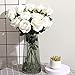 Cloudecor 15Pcs White Roses Artificial Flowers Fake Roses Long Stem Velet Rose Silk Flowers for Home Wedding Decoration (Round Roses,Cream White)