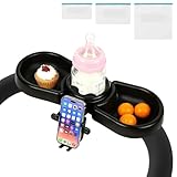 3-in-1 Universal Stroller Snack Tray Attachment with Dust Cover Sturdy Stroller Cup Snack Holder Clamp & Silicone Arms Grip Design Baby Travel Gear Accessories Detachable Dishwasher-Safe Universal Fit