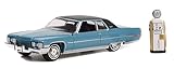 Greenlight 97130-A The Hobby Shop Series 13 - 1972 Caddy Coupe deVille with Vintage Gas Pump 1:64 Scale Diecast