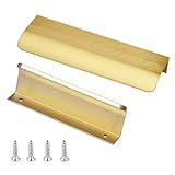 JOOJA 10 Pack Modern Style Finger Edge Pull Furniture DrawerHandles Hidden Cabinet Kitchen Drawer Handles Knobs, Brushed Brass 150(128) mm
