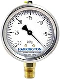Harrington 52895686 2-1/2" Liquid Filled Vacuum Gauge -30 inHg/0 psi 304 Stainless Steel with Vented Fill Plug 1/4" NPT Bottom Mount Industrial Grade A +/- 2/1/2% Accuracy ASME B40.100 Model 213.53