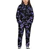 ORGYPET Hoodie Set Comfy Casual Hoodie Sets Oversized Sweater Set L for Youth Loose Fit Youth Two Piece Outfits Pullover Sweatshirt Breathable Fabric for All Day Wear, Butterfly Music Note