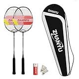 Badminton Racquet,All Carbon Ultra Lightweight Integrated Badminton Racket, Suitable for Leisure and Entertainment, Multi Racket Fitness, Including 2 Rackets, 2 Shuttlecocks, and 1 Ball Bag