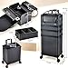 Costravio 5 in 1 Rolling Makeup Case Transformable Train Case, Black Vegan Leather Cosmetology Case on Wheels, Travel Cosmetic Storage Cases for for Hairstylist Artist Nail Beauty Salon Barber