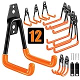 QcoQce 12 Pack Garage Hooks Heavy Duty, Utility Wall Mount Hooks for Hanging Bike, Ladder, Hose, with Extension Cord Straps and Anti-Slip Coating, Garage Organization, Includes Screws (Orange)