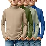 LessonZoo 4 Pack Boys Turtleneck Long Sleeve Shirts Elastic Solid Warm Basic Football Baseball Undershirt Base Layering Tops(Khaki, Grass Green, Light Green, Lake Blue,5-6 Years)