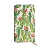 DaihAnle Cactus with Blooming Flowers Hand-Held Wallet Fashionable Long Microfiber Leather Large Capacity