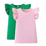 Toddler Cotton Comfortable Soft Round Neck Ruffle Sleeve Top Girls Summer Clothing