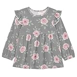 Baby Girl Blouse Ruffle Sleeve Top, Toddler Girl Watercolor Pink Rose Gray T-Shirt 3T
