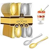 100 PCS Gold and Silver Mini Spoons Heavy Duty, 4 Inch Gold and Silver Plastic Spoon, Mini Spoons Disposable, Dessert Fork Disposable, BPA Free, Food Safe, Suitable for All Occasions