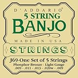 D'Addario J60+ 5-String Banjo Strings, Nickel, Light Plus, 9.5-20