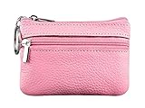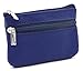 DKER Genuine Leather Card Case Wallet/Coin Change Purse with Key Ring - Blue