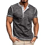 YSERB Men's Henley Shirts Short Sleeve Fitted Muscle T-Shirt Distressed Fashion Casual Basic Henley T-Shirts All Day Comfort Gray