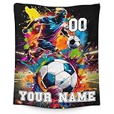 Custom Soccer Blanket Gifts for Kids Boys, Personalized 50x40 Inches Small Soft Fuzzy Warm Soccer Stuffed Throws Blankets for Couch Travel Sofa All Seasons