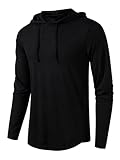 BEILU Men's Fashion Athletic Hoodies Workout Sweatshirt Long Sleeve Lightweight Casual Pullover Drawstring Hoodie Black-M