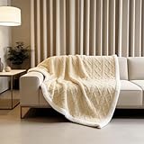 YYTCOZYY Cable Knit Sherpa Blanket – Reversible Soft Plush Throw Blanket for Couch Bed Sofa, Cozy Warm Fleece Blanket for All Seasons (Beige, 60"x80")