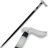Gil Hibben Walking Cane | Matte Black Color | Stainless Steel Handle | Equipped with Rubber Toe | Silver Wire Wrap Accents | Use for Daily Walks or a Stylish Accessory | Overall Length 37 3/8"