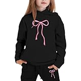 Teen Sweatshirts,Hoodies For Teen Girls 2 Piece Outfits With Cute Bow Print Long Sleeve Fashion Clothes Casual Tops And Pants for Girl(04_Black,150)