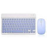 Bluetooth Keyboard and Mouse Combo Rechargeable Portable Wireless Keyboard Mouse Set for Apple iPad iPhone iOS 13 and Above Samsung Tablet Phone Smartphone Android Windows (10 inch Purple)