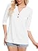 Dimur 3/4 Sleeve Tops for Women Summer V Neck Button Down Shirts Spring Break Essentials Womens Fashion White X-Large