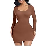 Women's Seamless Shapewear Dress - Tummy Control Bodycon Mini Dress with Long Sleeves & Crewneck for Sleek Silhouette & All-D
