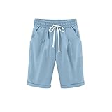 Kids Lightweight Linen Bermuda Shorts Loose Elastic Waist Casual Summer Knee Length Shorts with Pockets for 5-15 Years