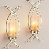 Walasis Candle Sconces Wall Decor Set of 2: Wall Hurricane Candle Holder Modern Metal Wall Mounted Gold Sconces Decorations for Living Room Bedroom Bathroom Hallway Outdoor