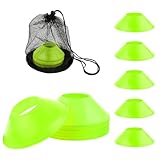 XIHIRCD 25pcs Soccer Cones for Training, Mini Football Cones with Mesh Bag Flexible Agility Disc Cones for Kids Basketball Practice Equipment Skating and Other Sports Games (Fluorescent Green)