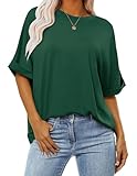 KEEDONE Women's Oversized T Shirts Short Sleeve Crewneck Loose Summer Tee Tops Basic Business Casual Blouse Shirts Comfy Boyfriend Workout Shirts 2024 Spring Maternity Clothes Dark Green-S