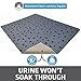 - ABSORBENT POLYESTER FABRIC, WITH WATERPROOF BACKING (URINE-PROOF): Patented Drymate material absorbs and contains liquids and wicks away moisture. The waterproof backing stops liquids and urine from soaking through and prevents them from damaging or staining the surface below.