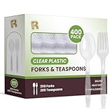 400 Count Plastic Silverware Heavy Duty - Clear Plastic Forks And Spoons Set -BPA Free Plastic Utensils Set -Heat Resistance Plastic Cutlery For All Occasions -200 Forks And 200 Plastic Spoons (Clear)
