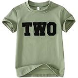 BOUTIKOME 2nd Boys Birthday Shirts Two Toddler Embroidery T-Shirts Baby Birthday Outfit Kids Party Chenille Patch Tee Tops(Green-2Y)