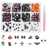 Halloween Nail Charms,90Pcs/Box Cute Cat Ghost Skull Pumpkin Cross Bat Bow Nail Gems Rhinestones with Tweezer,Gothic Halloween Mini Resin Figurines Charms for Manicure Design Decorations DIY Crafts