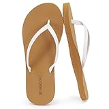 MORMIRAC Womens Slim Leather Comfortable Flip Flops Summer Beach Thong Sandals Arch Support Non Slip,White US8