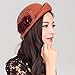Elegant Wool Top Hats for Women Fashion Flower Fascinators Wedding Hat with Hairpin Ladies Vintage Floppy Wool Felt Fedoras Rust Red