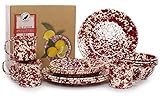 Enamelware 4 Piece Canister Set - Burgundy/Cream Marble
