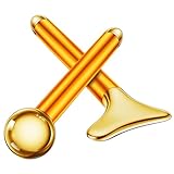 Amirce 2-in-1 Gua Sha and Ice Roller Facial Tools, Electric Face Massager Device for Eye, Jaw, Scalp, Neck, Gold