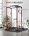 - 【Space-Saving & Organized Home Gym Solution】Designed for real homes, the cage occupies only 13.6 sq ft while integrating barbell holders, weight plate storage, and accessory hooks. Keep your gear organized and your floor clear, making it the perfect fit for garages, apartments, and dedicated workout rooms.